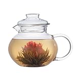 This glass teapot with a capacity of 40 ounces turns the act of brewing tea into an artistic presentation. Loose tea leaves are placed into the glass infuser, hot water is added, and when the water reaches the desired color or strength, the infuser is lifted out along with all the loose leaves. A glass lid keeps the heat in, and the graceful loop handle makes the pot easy to pour. Tea flowers look beautiful in the pot, too, and work best without the infuser. Made of lightweight yet laboratory-strength borosilicate glass, the teapot won't stain and is safe for use in the microwave and dishwasher. For the tea drinker, Primula also sells a glass tea-making mug and packets of tea flowers, which are AA-grade green tea leaves and actual dried flowers that are hand-sewn into tight balls by artisans in China. After a tea flower ball is place in hot water, it will slowly sink to the bottom and unfurl into full "bloom." Some even have two different kinds of flowers that unfurl into a colorful spectacle, adding fragrance and flavor to the tea.