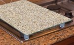Instant Counter Granite Glass Burner Cover Cutting Board. One 20 1/2" x 11 3/4" tempered glass cutting board with 1 3/4" high, heat resistant silicone capped feet. Creatively solves counter space problems in homes, apartments, motor homes and RV's by creating additional counter space over the stove top and/or kitchen sink. Fits standard range tops with gas, electric or ceramic burners.
