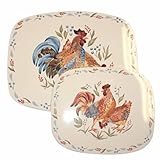 A colorful rooster adorns this counter/stove mat set in Corelle's licensed pattern, Country Morning. You'll get a large and a small mat to use almost any way you wish.