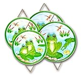 BRAND NEW Set of four (4) Frog Stove / Burner Covers. This is a very beautiful set with lots of color and lots of detail! The 3-dimensional large Frogs are quite impressive. Please take a look at the pictures to understand what I mean. There is a beautiful variety of colors painted over an embossed and relistic design.The set consists of four (4) pieces: two large burner covers measuring approx. 11.5" in diameter and two smaller bruner covers measuring approx. 9.5" in diameter. Each piece is made of ceramic with a very fine gloss fininsh coating it. Each piece also has two attachment chains on either side to lock the cover onto the burner. This would make a beautiful addition to ANY kitchen, or this would make a wonderful gift for any Frog lover!! Please don't forget to take a look at out many other Frog design items of this same design set and other styles.