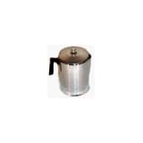 Range top percolator. 1.0 to 1.3mm of aluminum. Natural aluminum exterior and interior. Phenolic stay cool handles. Features graduations for easy measuring. Screw in glass top. No drip spout. Natural aluminum lid. 9 cup.