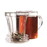 This glass tea mug turns the act of brewing tea into an artistic presentation. Loose tea leaves are placed into the glass infuser, hot water is added, and when the water reaches the desired color or strength, the infuser is lifted out along with all the loose leaves. The lid is turned upside down on the table to act like a coaster. The tea infuser is placed on the coaster to no tea drips onto your table. With its wide loop handle, the mug can be picked up and carried without fingers touching the hot glass. Tea flowers look beautiful in the mug, too, and work best without the infuser. Made of lightweight yet laboratory-strength borosilicate glass that won't stain, the mug may be used on the stovetop or in the microwave, and both the mug and infuser are dishwasher-safe.For the tea drinker, Primula also sells a glass teapot and packets of tea flowers, which are AA-grade green tea leaves and actual dried flowers that are hand-sewn into tight balls by artisans in China. After a tea flower ball is place in hot water, it will slowly sink to the bottom and unfurl into full "bloom." Some even have two different kinds of flowers that unfurl into a colorful spectacle and add flavor to the tea.