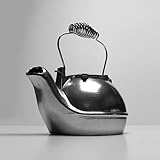 The Condar Half Kettle Steamer is a humidifier especially designed for the narrow ledges of fireplace inserts and woodstoves. Only 4" wide, yet looks like a whole kettle when in place, and holds over 2 quarts of water! The beautiful design is patented. The spout is cleverly designed to direct steam away from the flat side, out into the room. The lid swivels open to the front, so it won't fall off when you're filling with water The Half Kettle is crafted of hand-cast Aluminum rather than cheaper cast-iron,which rusts and eventually cracks, permitting rusty water to stain surfaces. Aluminum is lighter in weight-a joy to use! The light weight makes it ideal as a decorative accent for the home as well. Made in the USA by American artisans, the Half Kettle is created using the time-honored traditions of Old World craftsmanship. Polished Silver Finish (model HK-S) with Black handle.