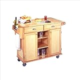 The freedom to conduct food preparation anywhere you wish sums up the entire appeal of the Home Styles Napa Kitchen Center.Whatever the task entails, this cart is more than up to it with a broad hardwood table top, 2 utensil drawers and two large interior cabinets with adjustable shelving.Two central open storage shelves add further storage capacity, and four wheel casters allow for freedom of movement and feature a locking function for safety.A side mounted multi-function caddy and towel rack offer further practicality, while a natural wood grain finish has an appeal all it's own. Features:Kitchen Center has a broad hardwood table top ideal for food preparationKitchen Cart has two separate storage areas with raised panel doors and adjustable shelvesTwo utensil drawers with glides Dual fixed open shelves Towel barMulti-caddyHeavy duty rubber wheel casters with locking function Assembly requiredSpecifications:Weight: 119 lbOverall dimensions: 35.25" H x 49.75" W x 24" D